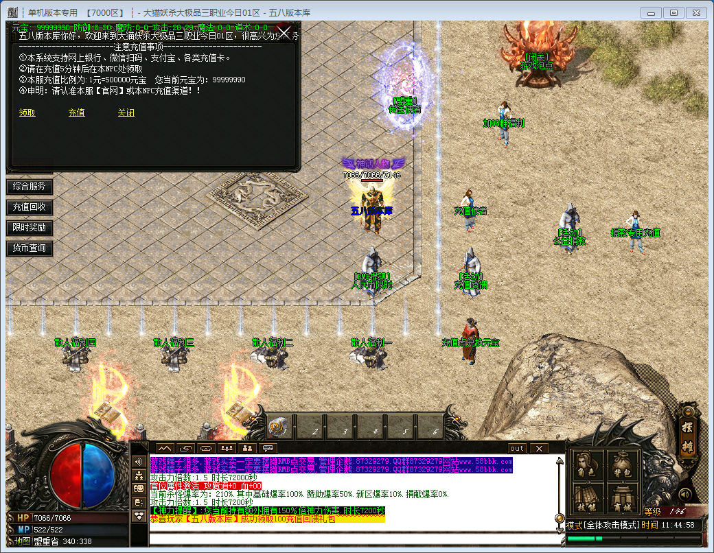 介绍:本服元宝充值超级好打,充值点1个小时最低能打20000以上充值.绝对真实