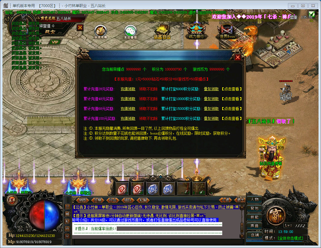 装备介绍:本服共计上千件各类装备,含倍攻首饰、时装、生肖、特殊等,终极装备、爆率全开、新手怪都爆终极.