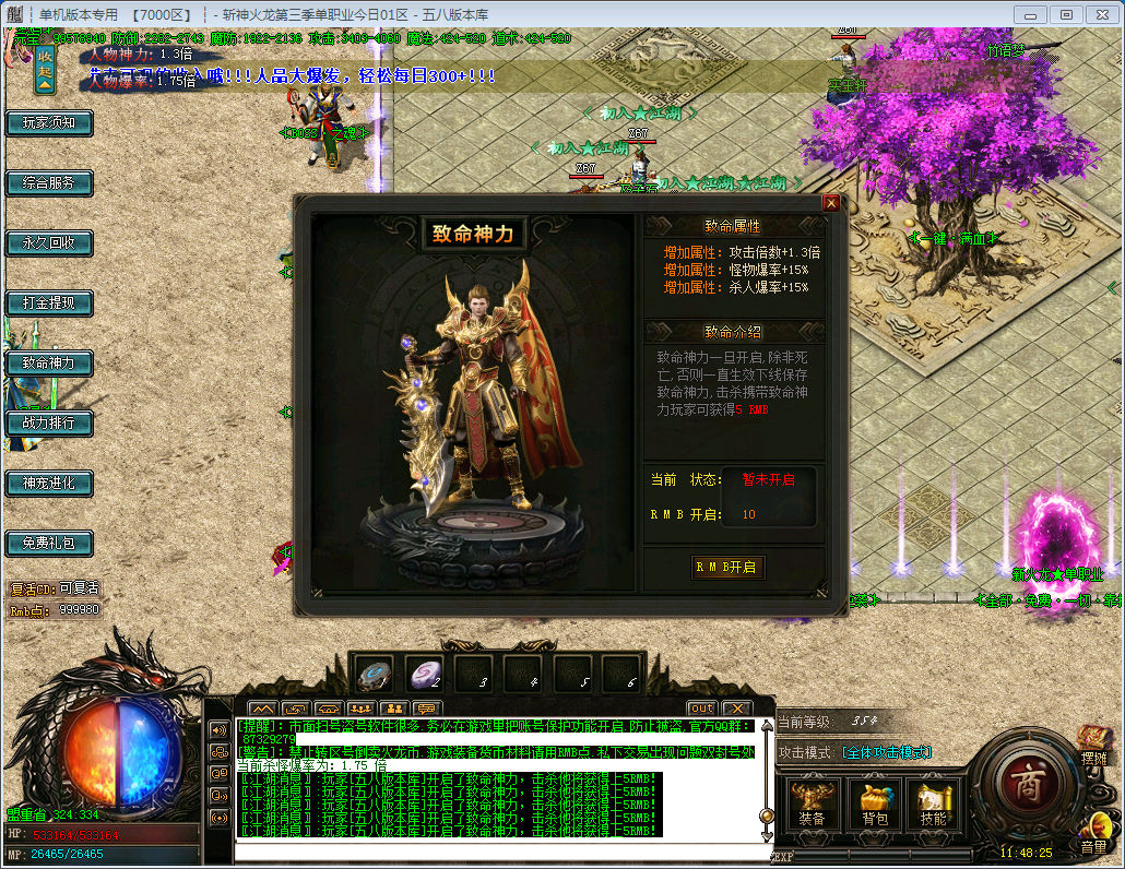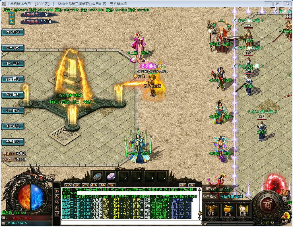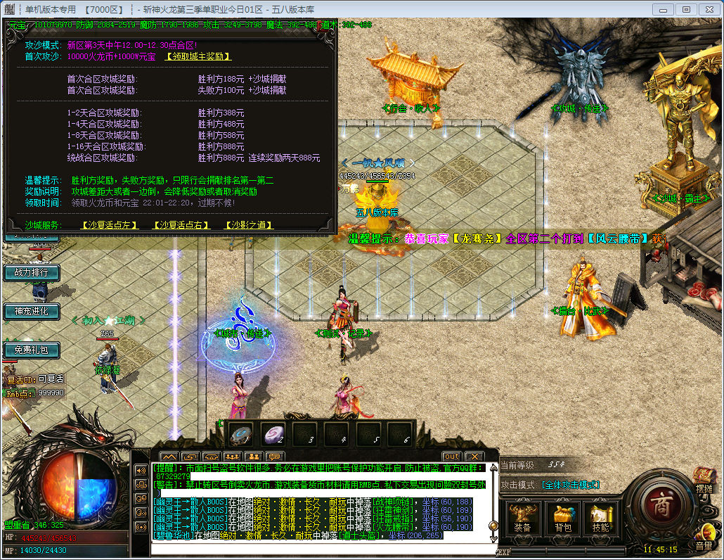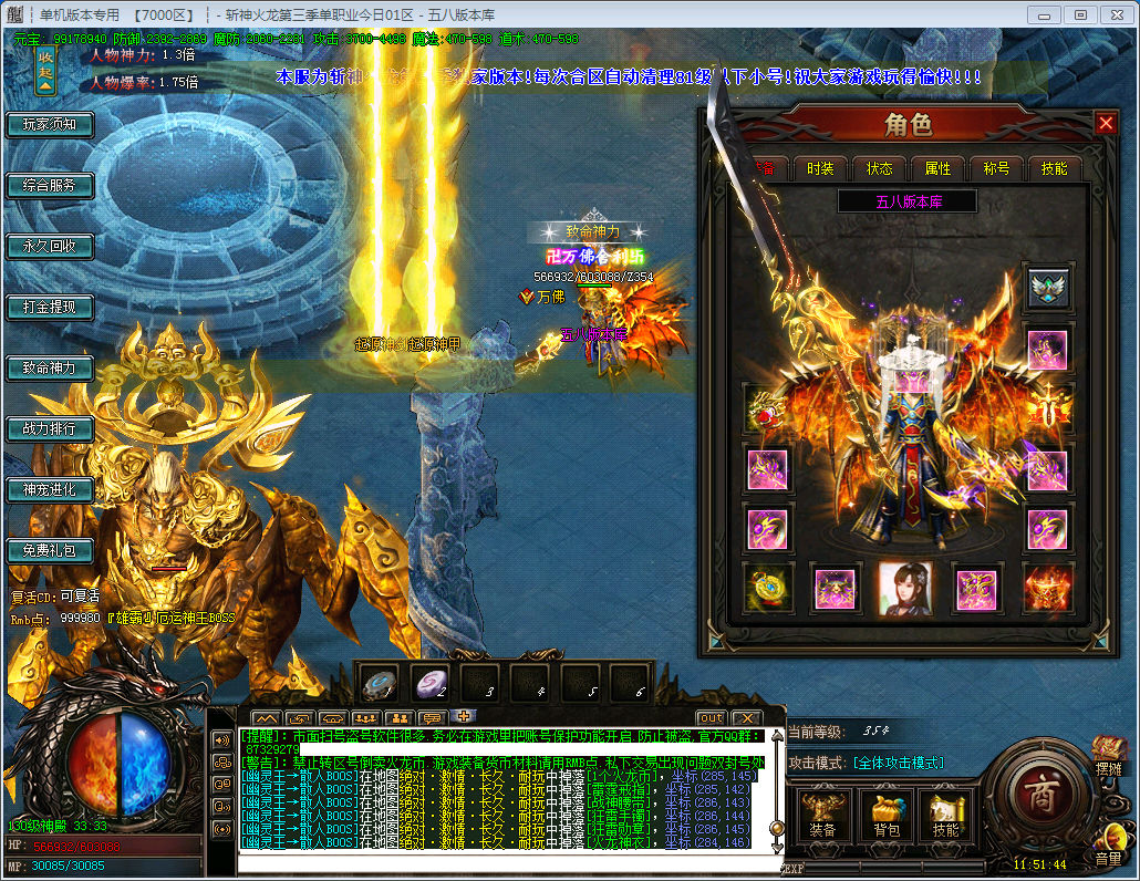 【版本说明】: 斩神火龙第三季开启,品牌公益单职业,沙奖-米回收装备。