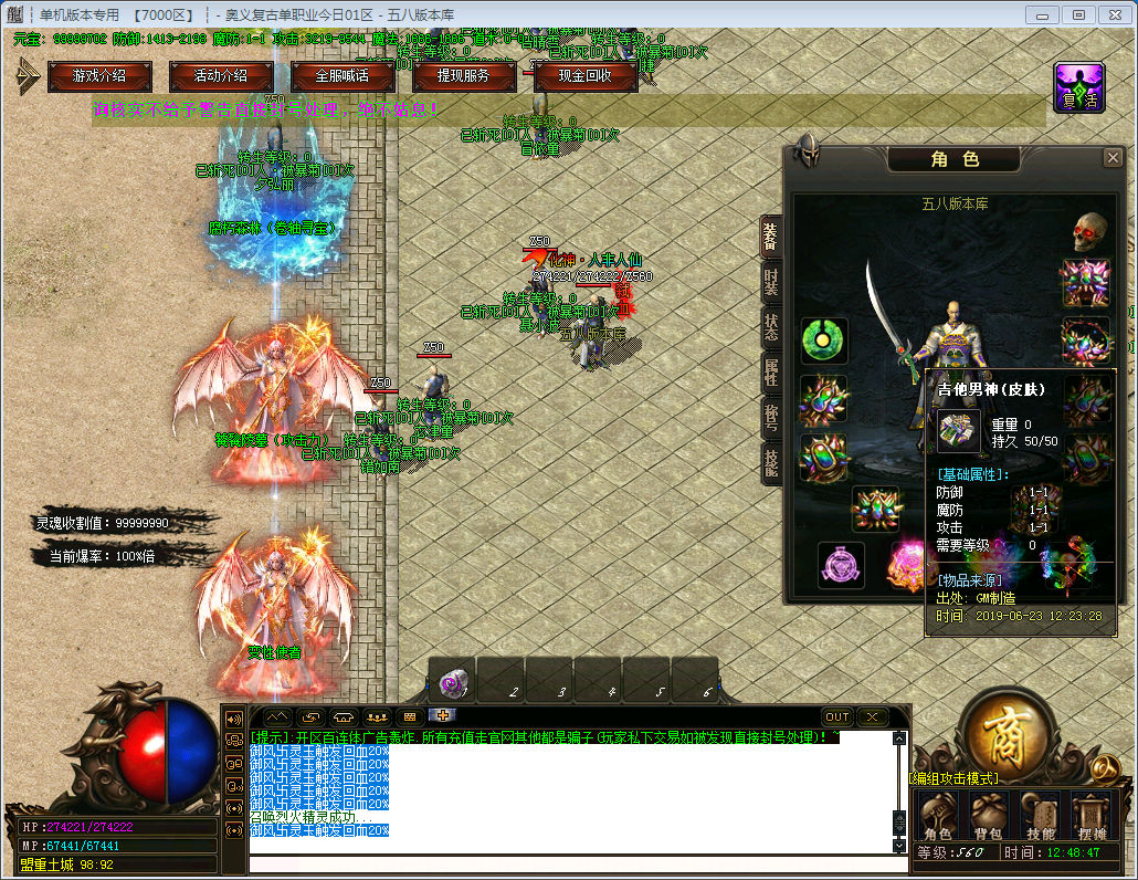 【游戏药水】:|本服无药水,回血全靠灵玉特殊装备,只能打怪获得!回城石在背包综合服务领取即可!
