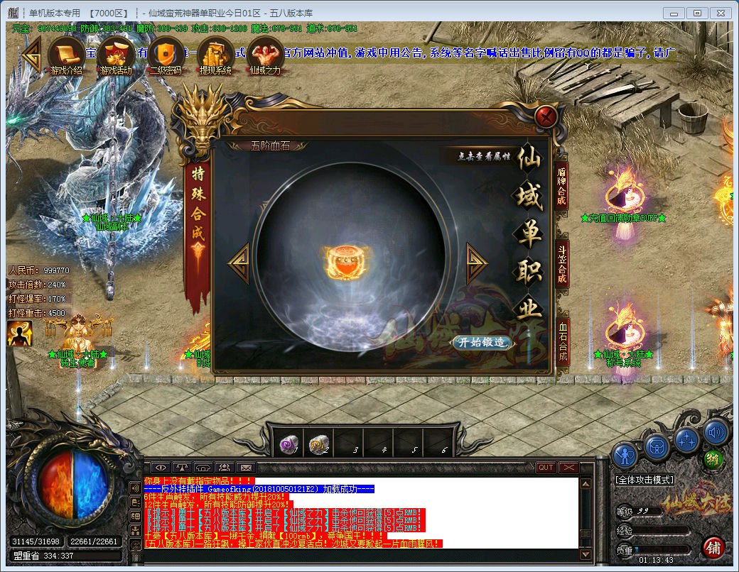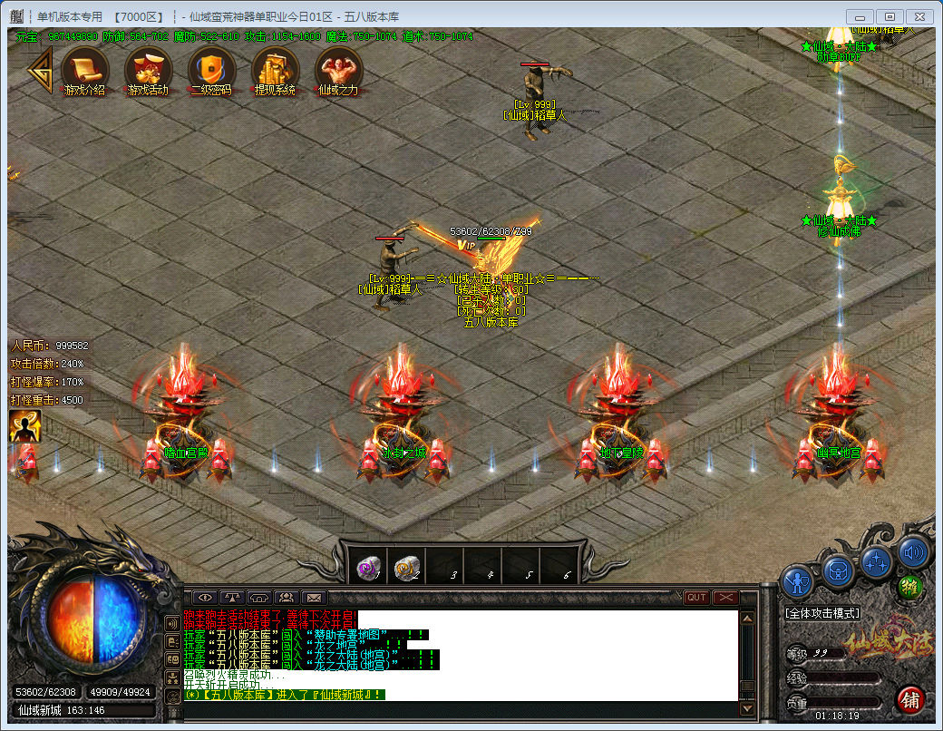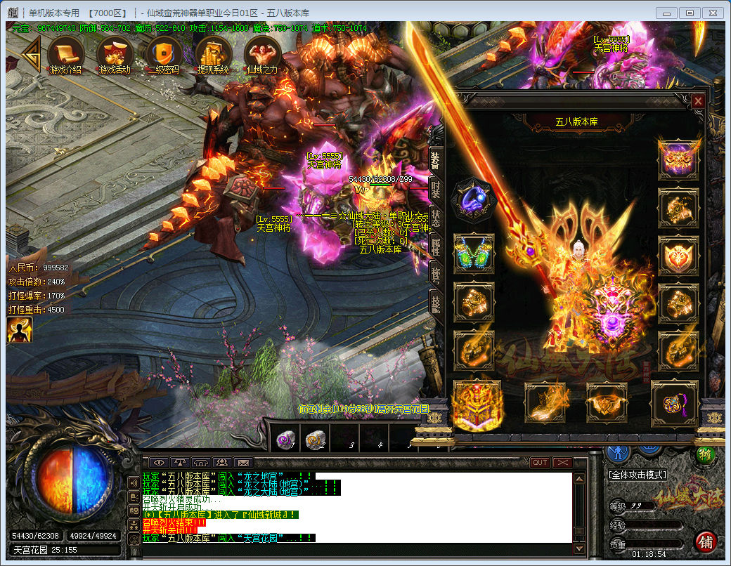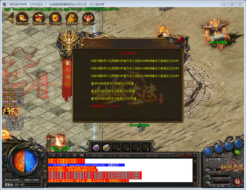 专属神器单职业大服,多种玩法,装备炫,超激情PK体系!