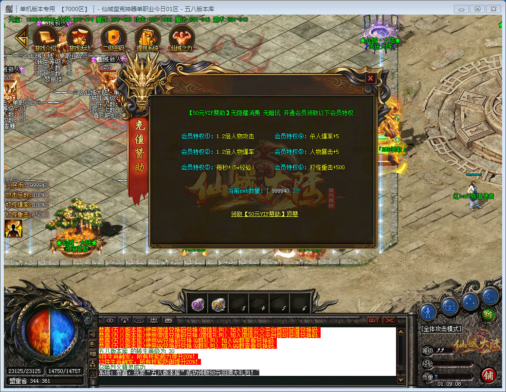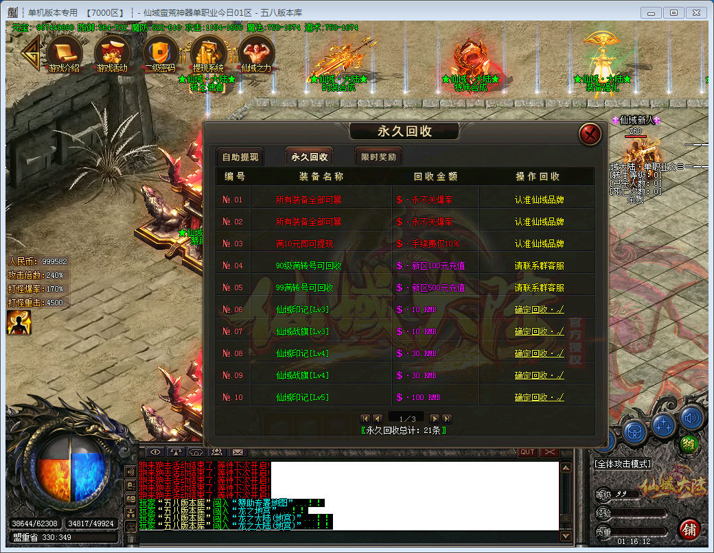 网银充值 仙币1:100 米1:1 装备米永久回收。无元宝充值一切靠打(快捷支付 安全放心)