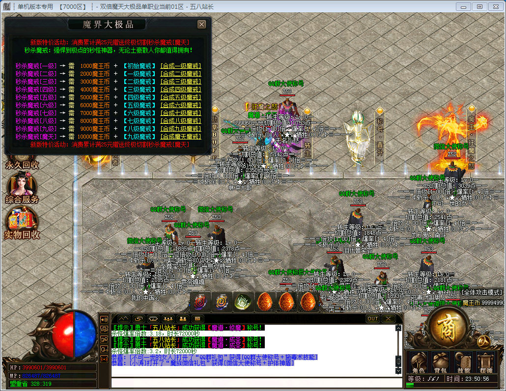 双倍充值玩魔界 25慢回馈 48满魔戒 勋章BUFF 一红保底38次 10米秒