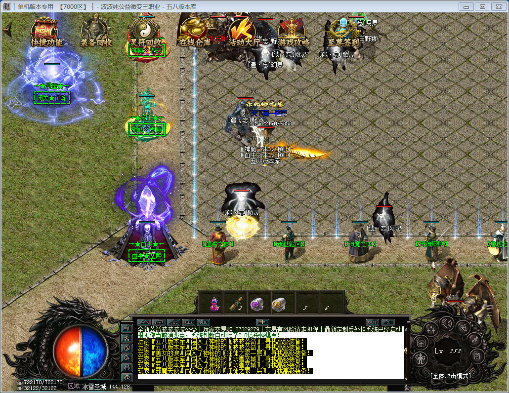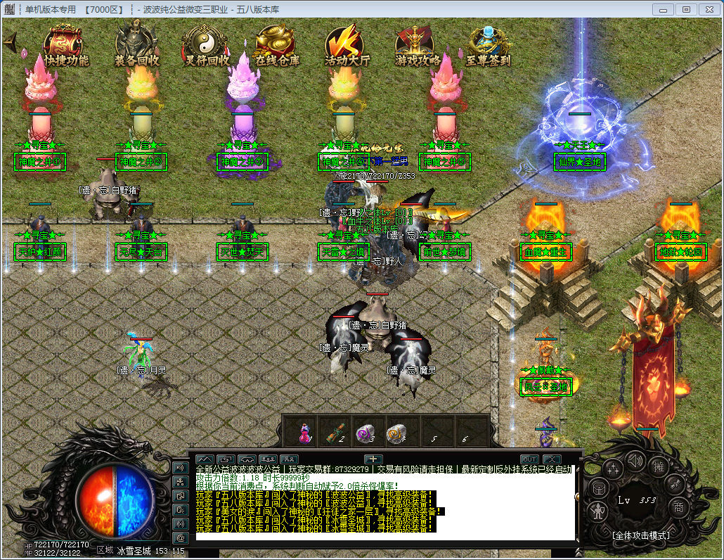 每只奖励10-50灵符+神秘装备一件(最高到终极)血牛地图每层刷后期9只BOSS和一只血牛BOSS