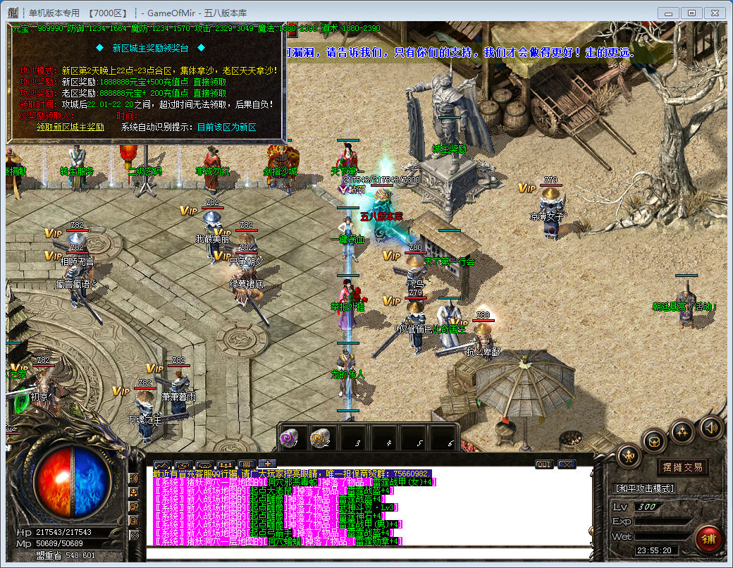开区第二天晚上合区,第三天晚上统一攻沙奖励+188888元宝!