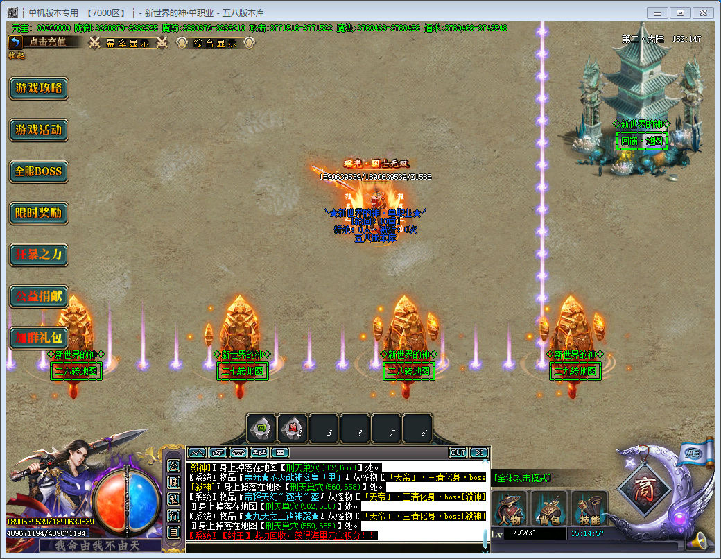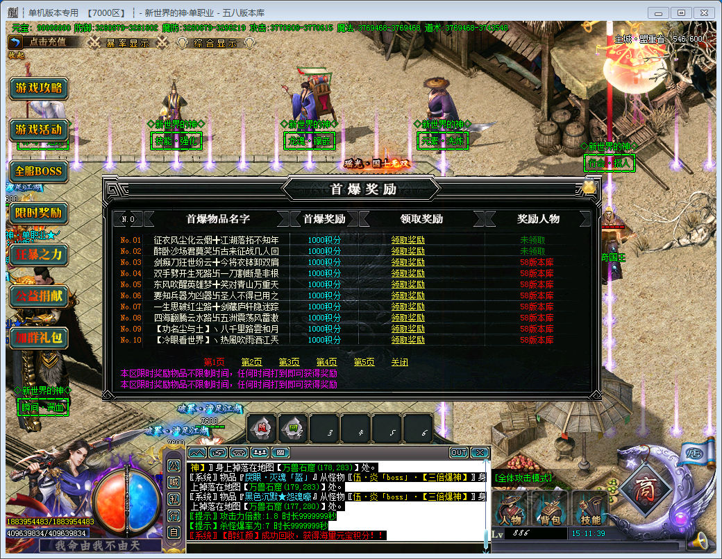 『公告』 每小时有激战BOSS,土药送宝,多宝树,活动多多,世界BOSS!