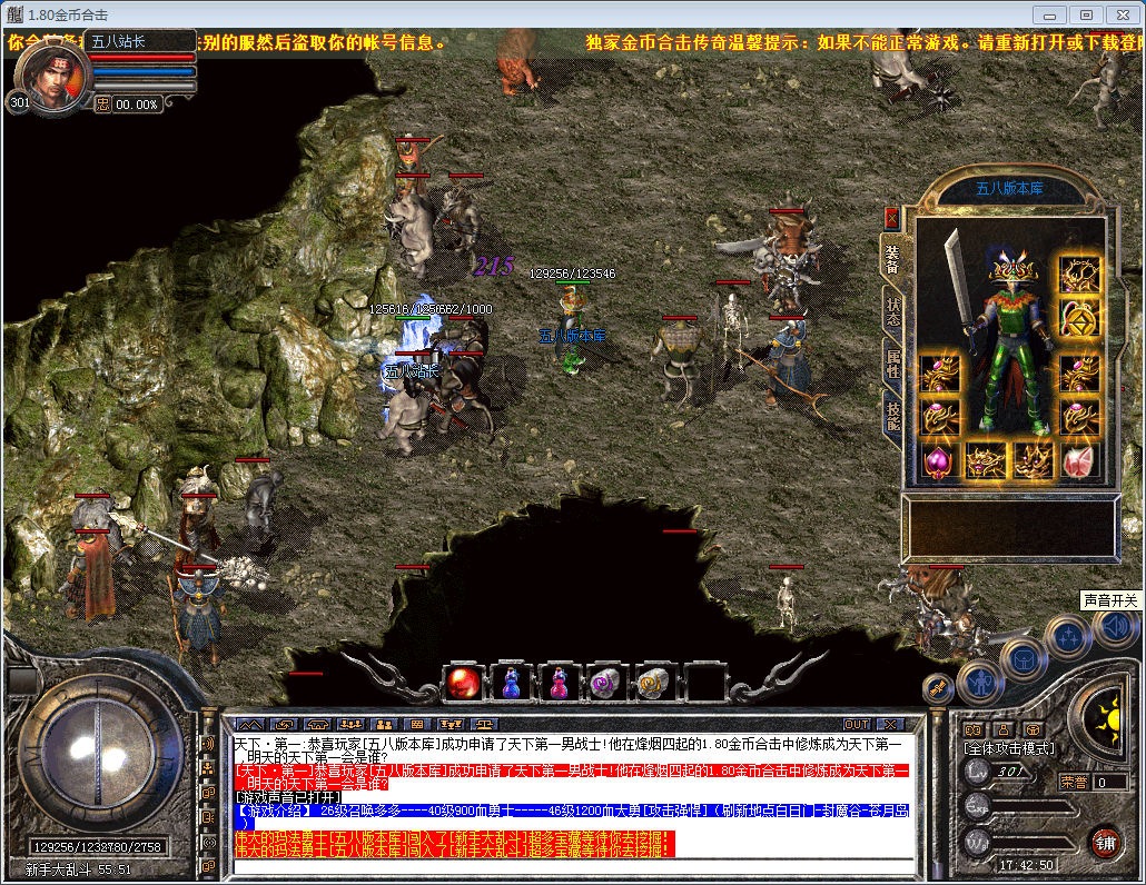 【版本介绍】:独家80金币双倍属性合击。开区所有地图全部开放,装备技能不限制等级!