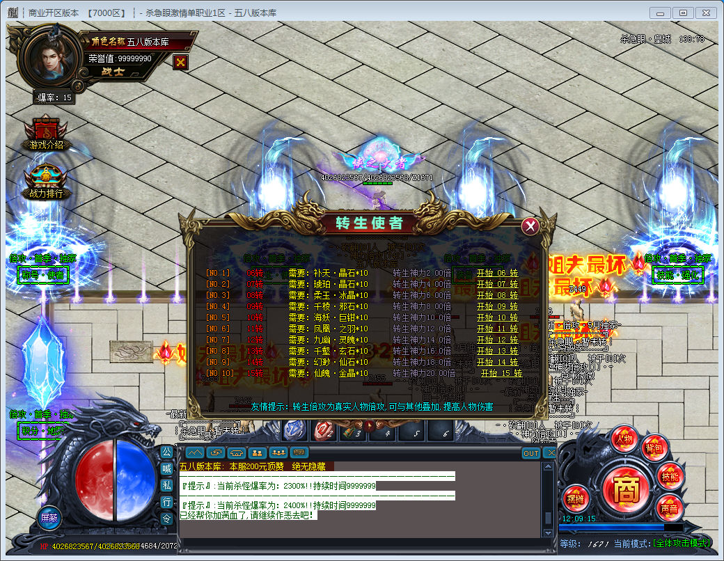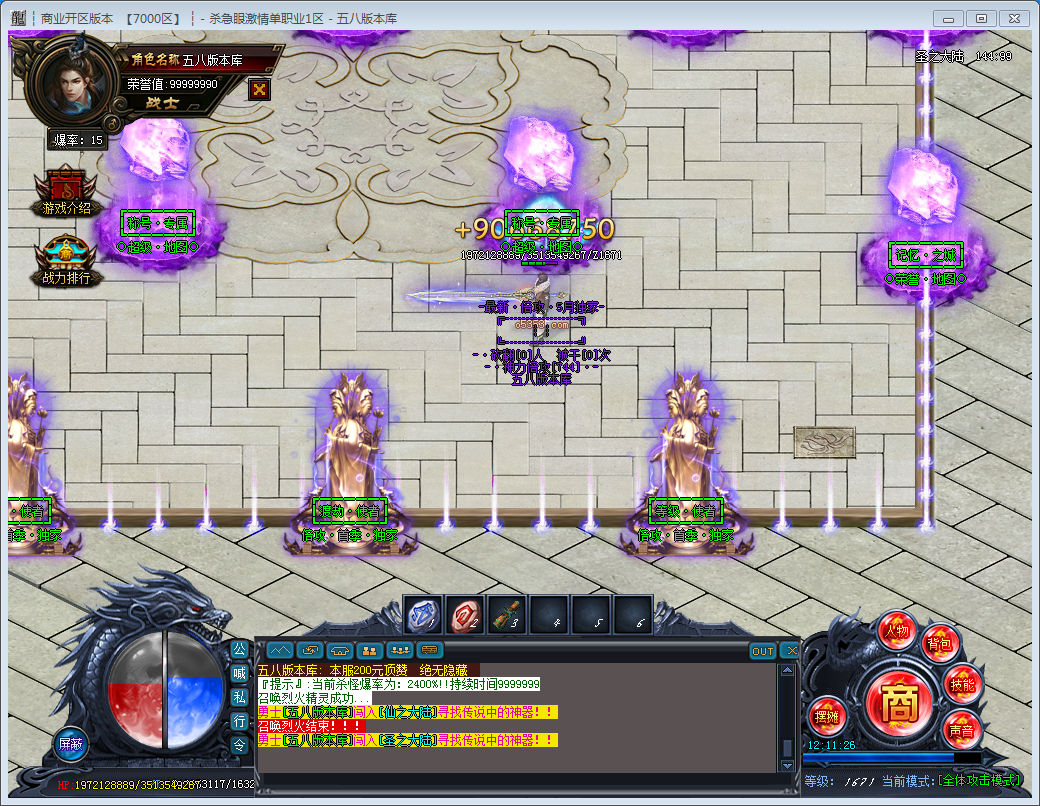独家制作版本 抵制不良游戏 拒绝盗版游戏 注意自身保护 谨防受骗上当 适度游戏益脑 沉迷游戏伤身 合理安排时间 享受健康生活 - 杀急眼·倍攻 -【游戏介绍】:本服为激情单职业 无特戒 追溯PK手法技术流!真正的低消费大激情 一切靠打!装备不花哨 玩法不繁琐 只为引领传奇清流!每天六个新区: 一区00:30 ? 二区11:00 ? 三区14:00 ? 四区16:30 ? 五区19:30 ? 六区22:30.网银比例:1米=50000钻石 + 20积分 + 20荣誉点 + 50游戏币送会员,送称号,送切割,地图免费,无任何隐藏消费!限时超多,满回馈可打,沙奖上千,区区超百人大战!!永久回收,小怪.BOSS真的啥都爆,只为了让你杀红眼!!BOSS首杀,装备首爆,永久回收,小怪.BOSS真的啥都爆!!本服所有,装备材料 ,钻石财神币都值钱!一切都可卖!!品质保障,装备保值 ,超多福利,激情和两不误!!【第六季首战首区等你来战】更新内容较多,玩法较丰富,请进QQ群查看新玩法:2019独家单职业⑧群:8888888