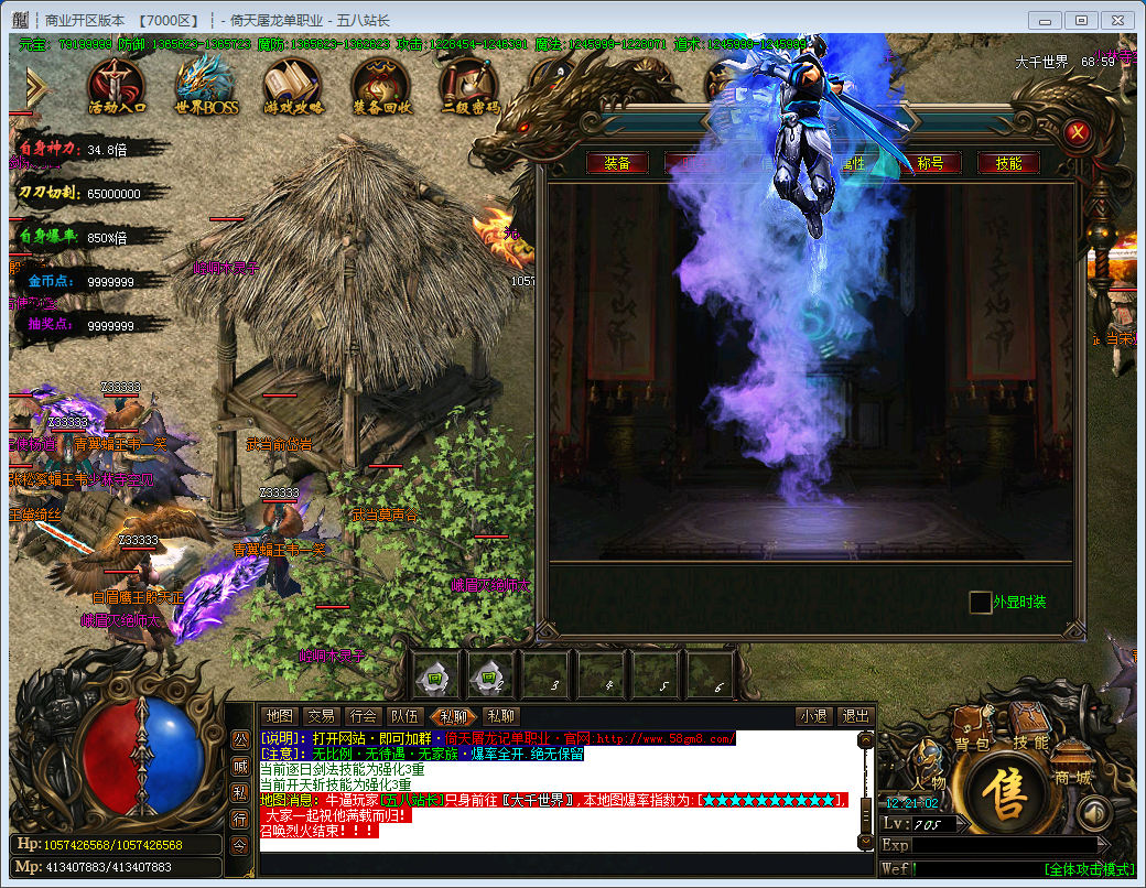 【游戏介绍】9:不卖装备 不卖元宝 不谈比例 真正的公平游戏 每天稳定6个新区 新区2天后合区 让大家新区统一起跑线发展