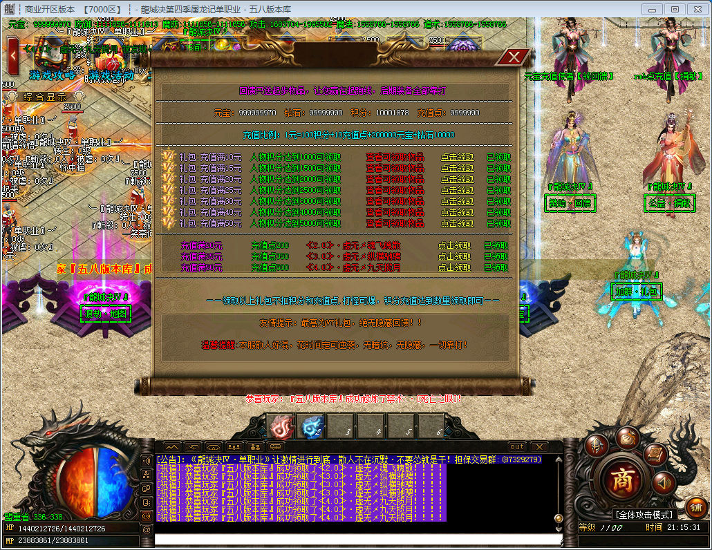 本服所有都能打,世界BOSS必爆充值卷!散人好混!良心版本!