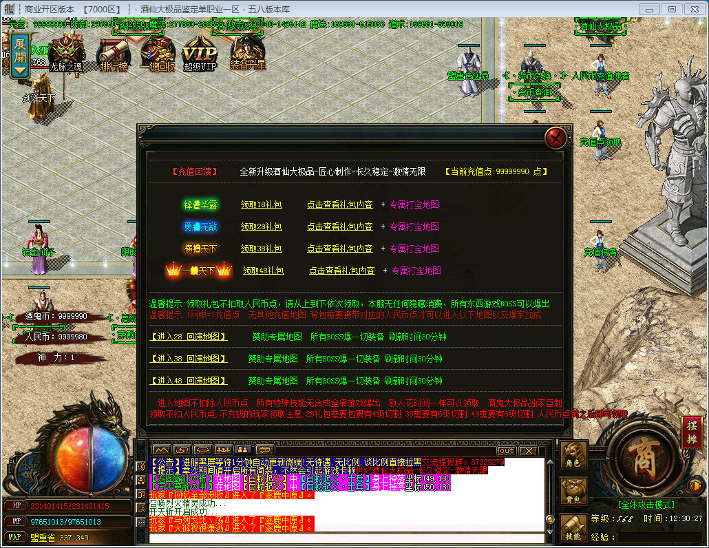 【充值比例】1米=500积分+500酒仙币 测试充值多送20%, 无比例,无待遇!
