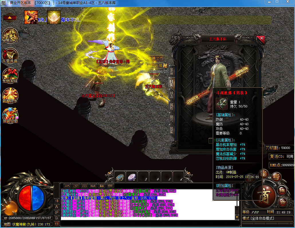 ⑧:注意:本服等级为130,升级需要君主以上装备,保底需要5个九玄金丹可通过!