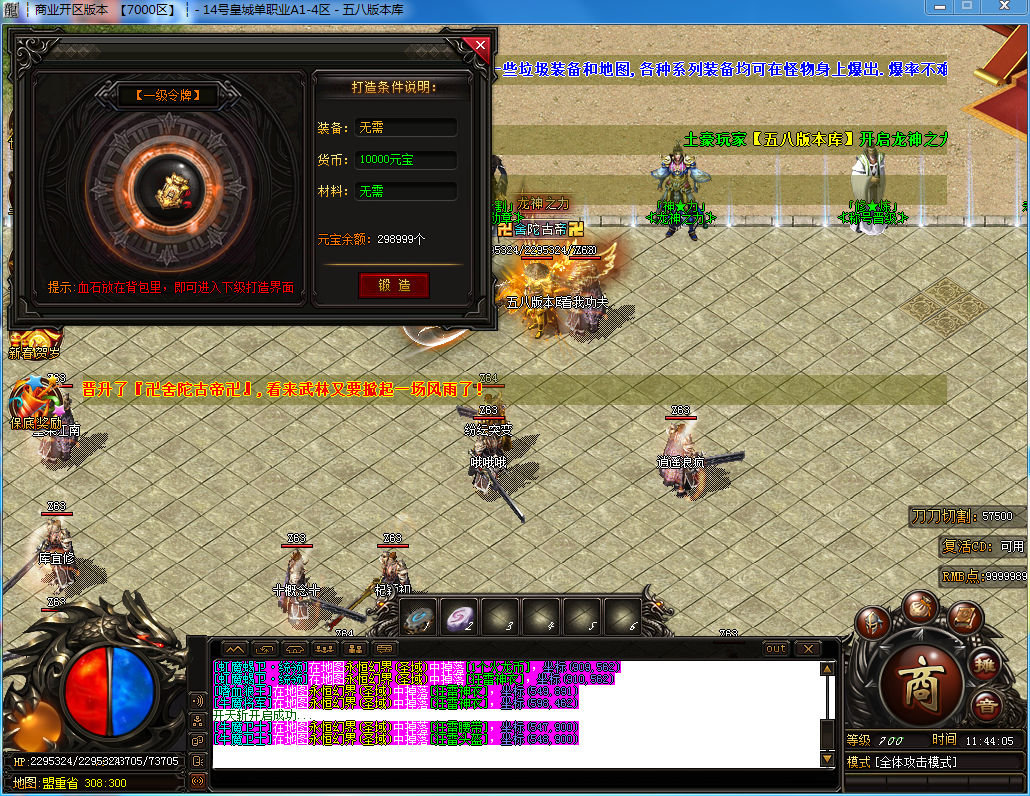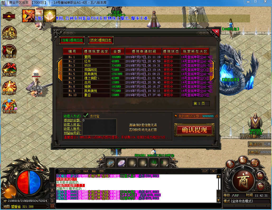 ③:购买无情赞助的玩家,可直接去火龙大陆下五转地图打,火龙币,元宝装备材料全可卖钱