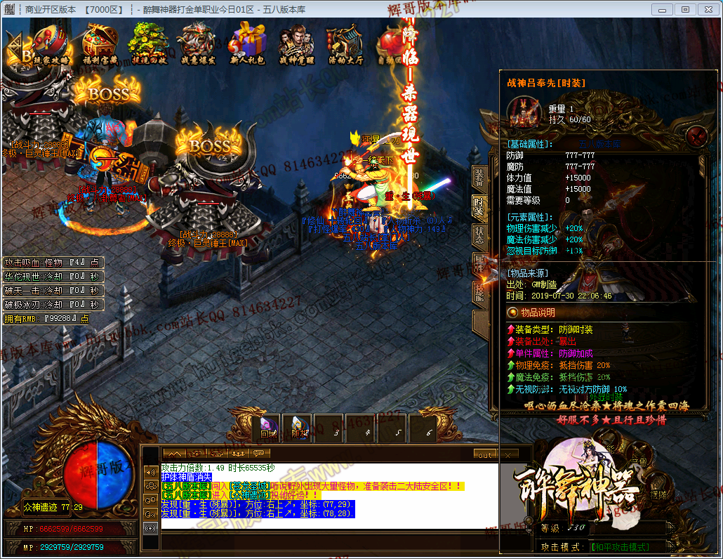 给大家弄个详细的介绍,本服是是微变神器版本,最高等级封顶151级