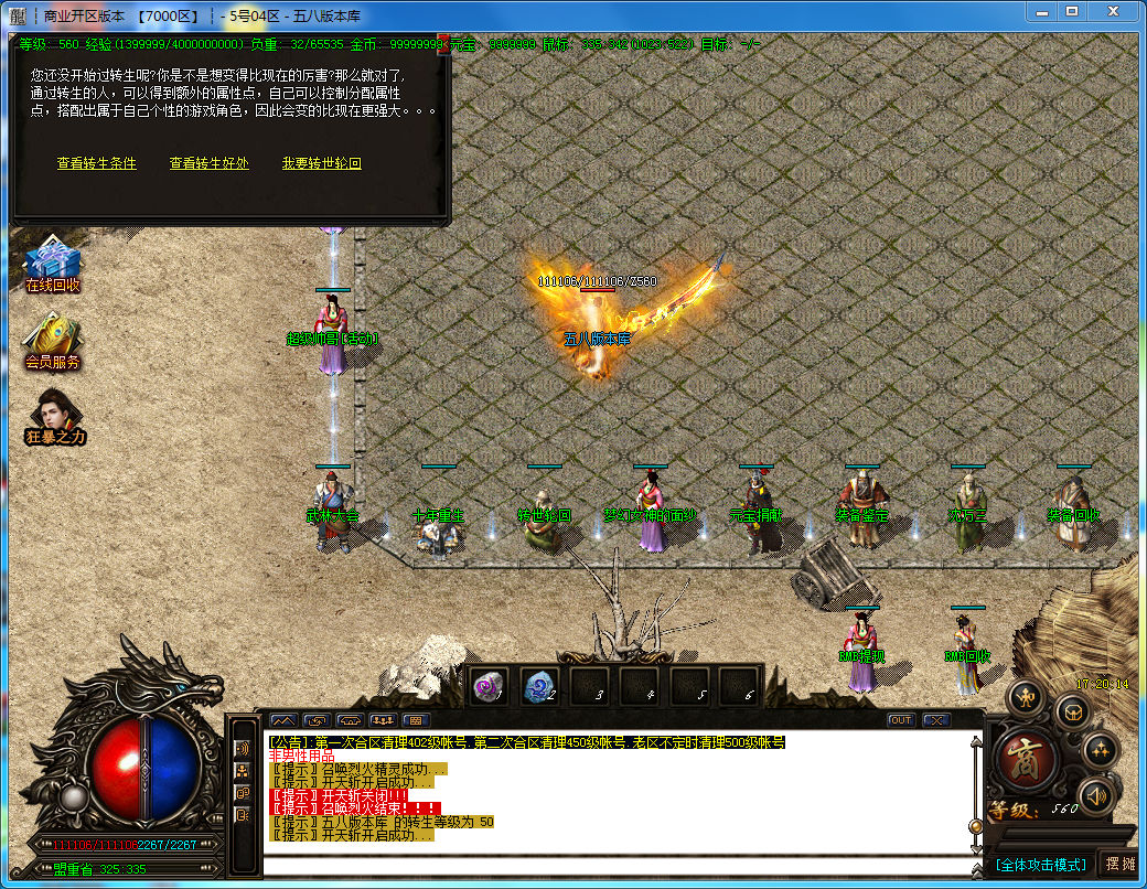 【特色】 装备全靠打.爆率完全看脸.只要有时间.元宝.装备.等级全都有!