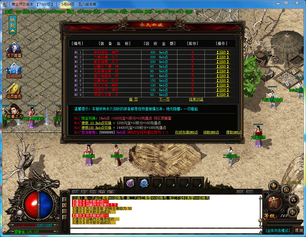 【充值】 元宝1:100,网银1:120,绝无比例,唯一充值货币