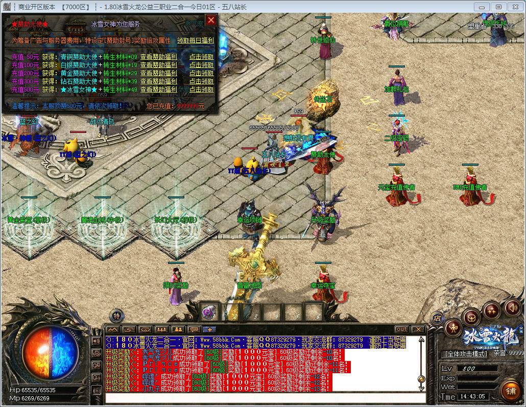 【充值比例】:额外赠送(1充值点+100冰雪币+1每日首充)