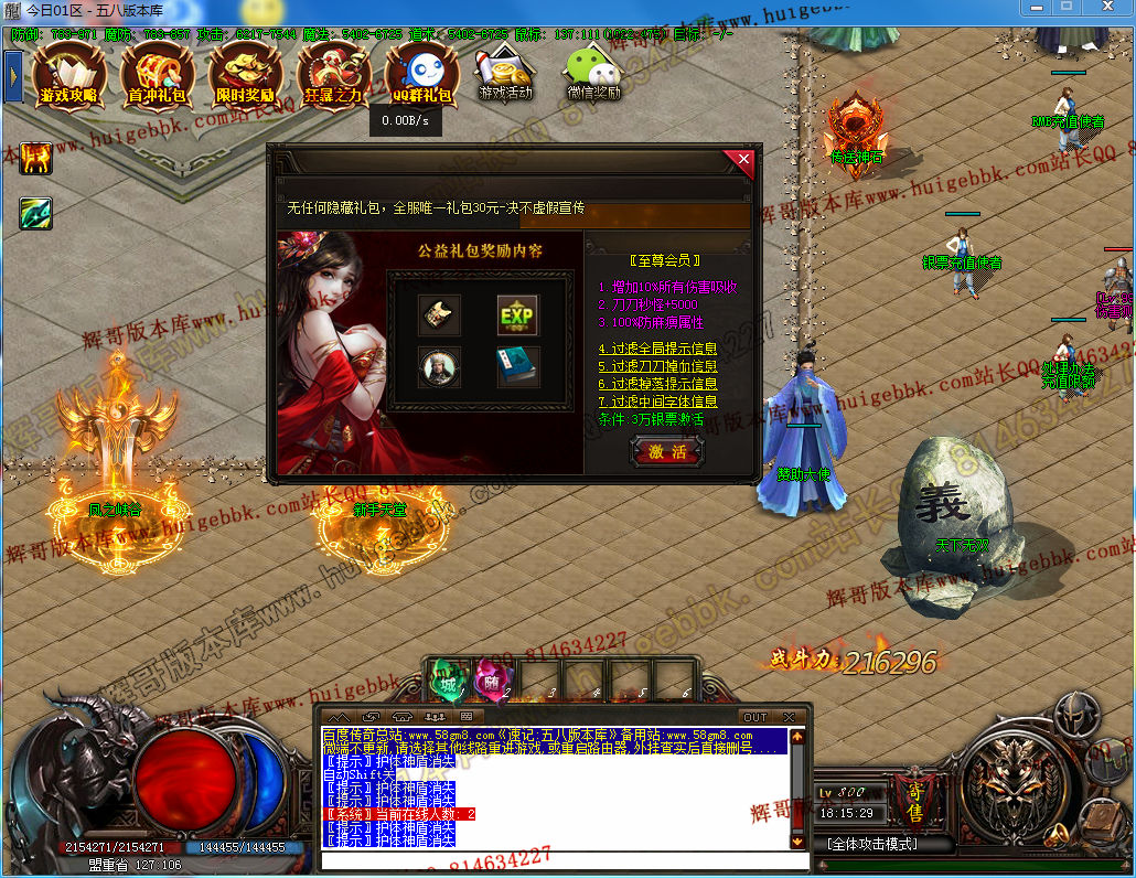 <>★.土豪玩家.充值后激活至尊称号加沙城捐献,开启狂暴之力,直接去打首杀奖励,打完一波奖励后升级切割到顶