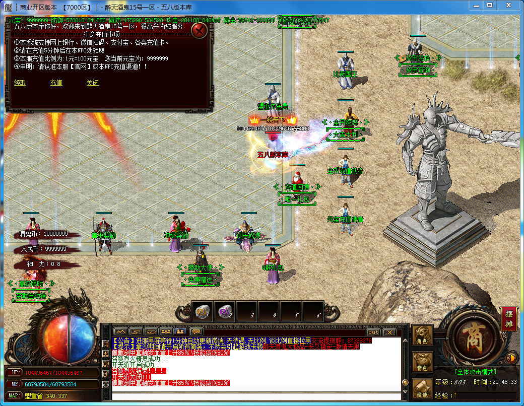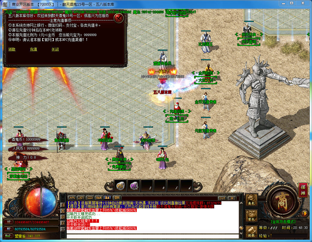 【充值比例】元宝1:5000 网银微信支付宝1:10000!