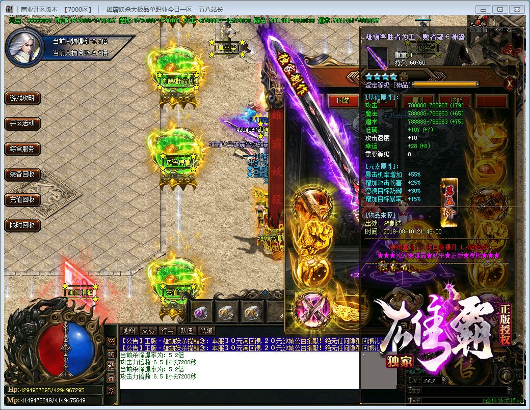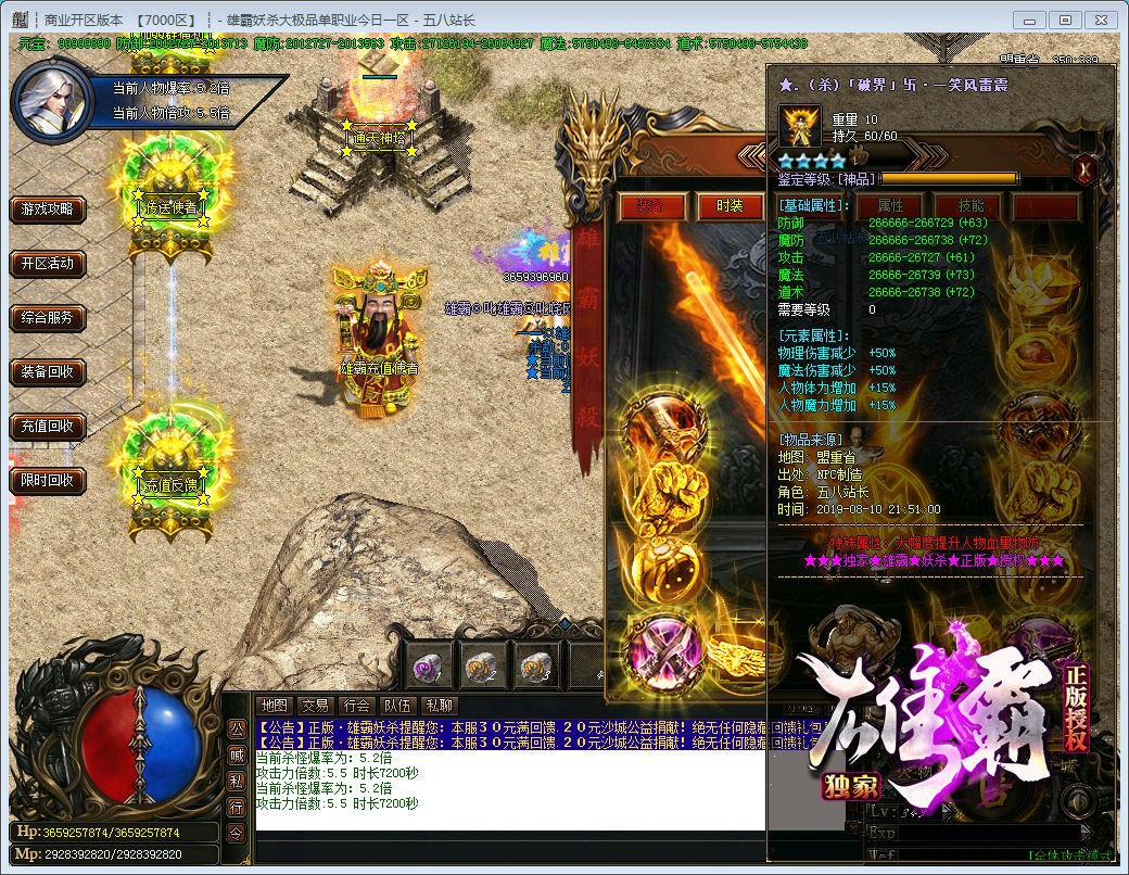 游戏介绍:我们的版本复古耐玩,你可以上游戏看看!装备全部靠打,花时间或花钱都能混到顶级,