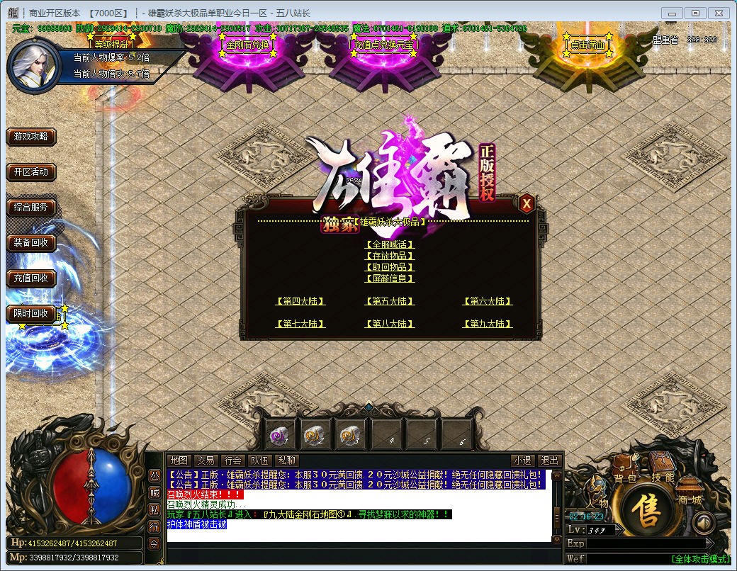游戏介绍:本服唯一货币.....凌云币1:100