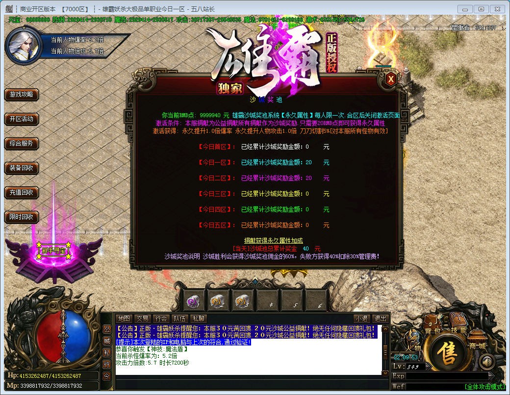 游戏介绍:新区第三天拿沙保底300拿沙奖励,胜利方获得%70,失败方获得%30奖励