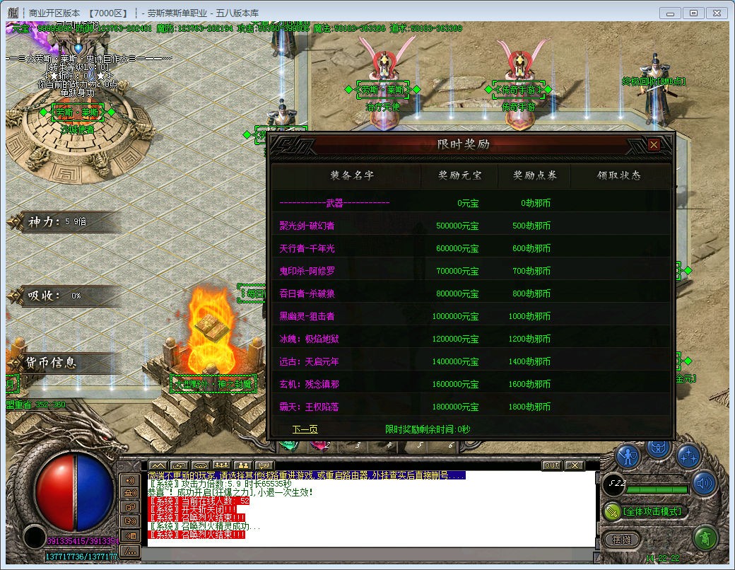 攻略:天道之力死亡不小时!属性永久存在.当天所有区捐献获得的米点50%将用于发放沙巴克奖励!!