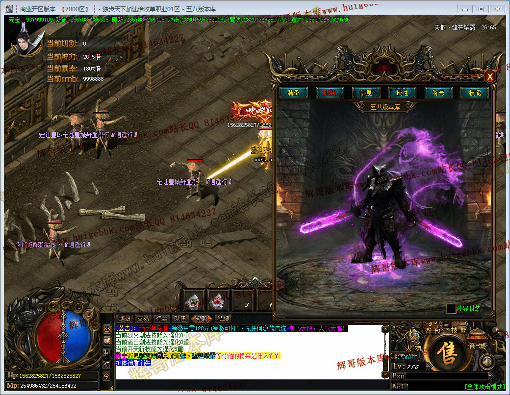 【※公告※】本服为单职业特色加速倍攻版本,PK技术全新玩法,各项属性经过精心调试,不变态,无秒杀,PK畅爽刺激。