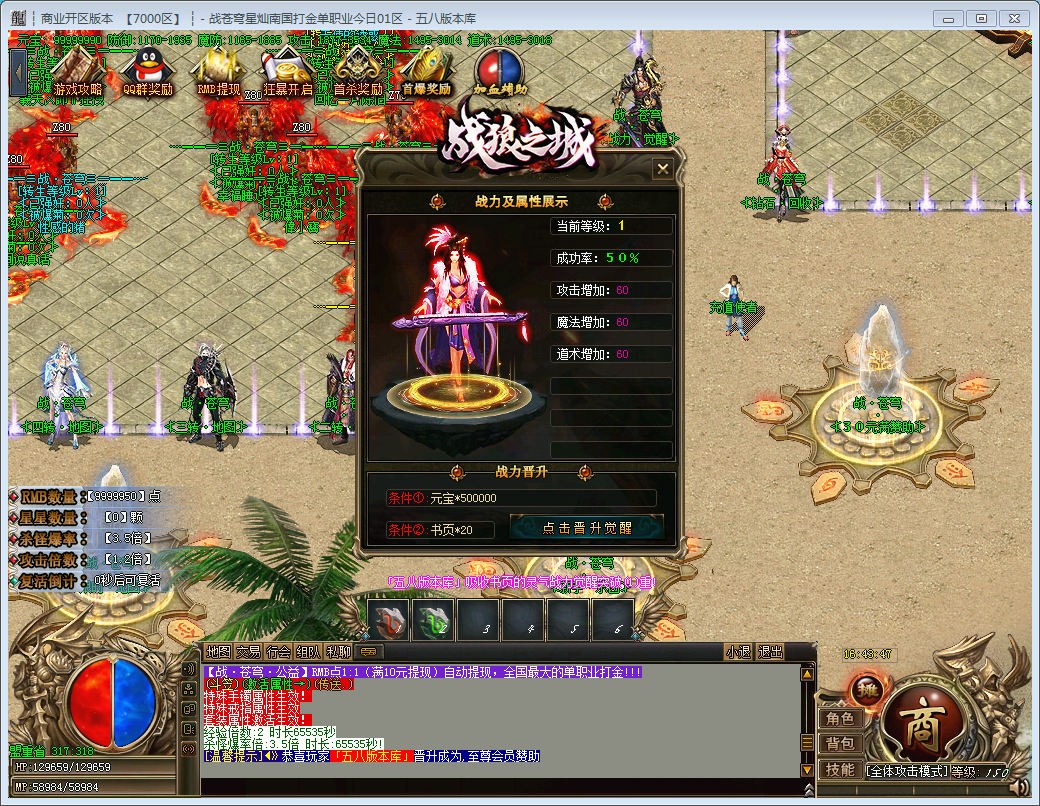 【游戏特色】【版本特色】:所有装备靠打等级靠手动升级元宝装备保值