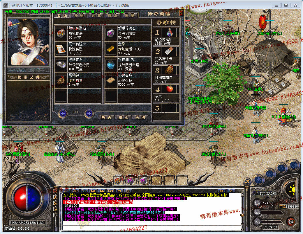 【所有怪物都有机率掉落点,可到土城坐标:339:337兑换元宝充值】
