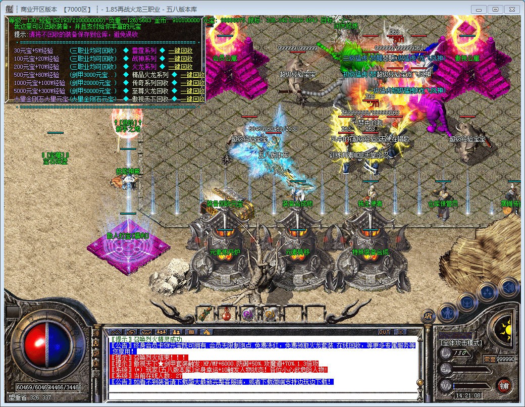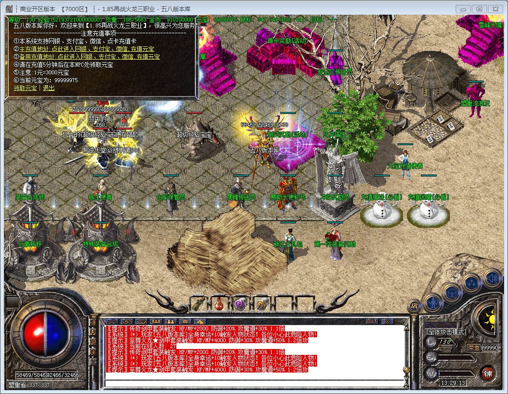 【充值比例】:增加大量新手地图.新手不愁没地方打装备.另外增加多个终极地图.没有等级限制.全部免费进.