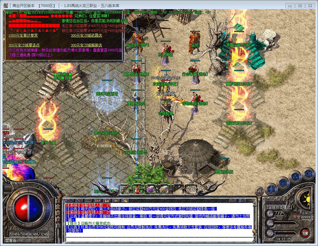 【攻沙奖励】:新区第2天合区后统一攻沙,攻城奖励累计300万元宝+300金刚石,老区天天攻沙, 老区更激情!