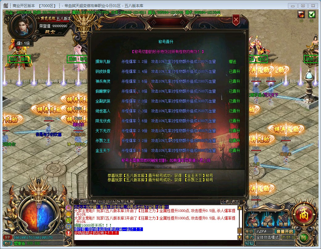 游戏介绍:小怪疯狂爆终极 图无限制进入 一包烟钱 激情一个月 上线直接装B!散人无限牛逼!