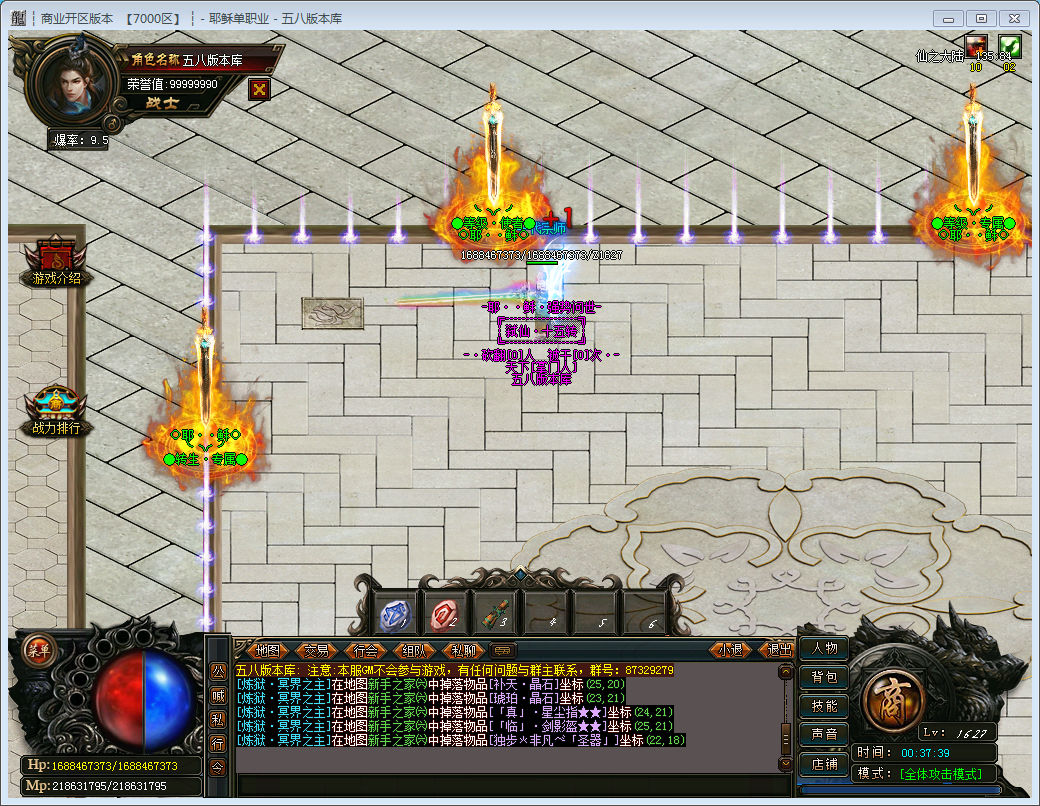 游戏介绍:特别说明小怪爆终极,其中乐趣自行体会,装备保值回收,散人逆行版!