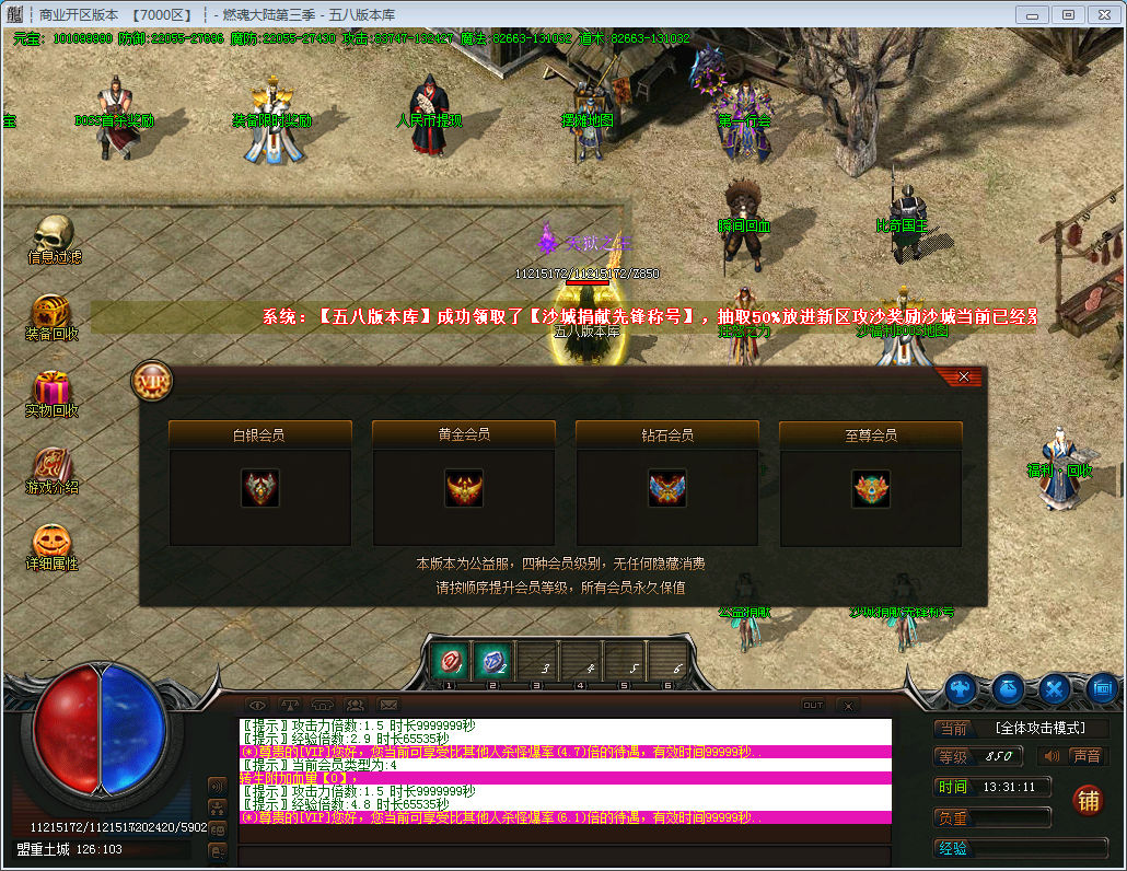 为了增加勇士们的爆率,回收加成,请大家前往沙城捐献.