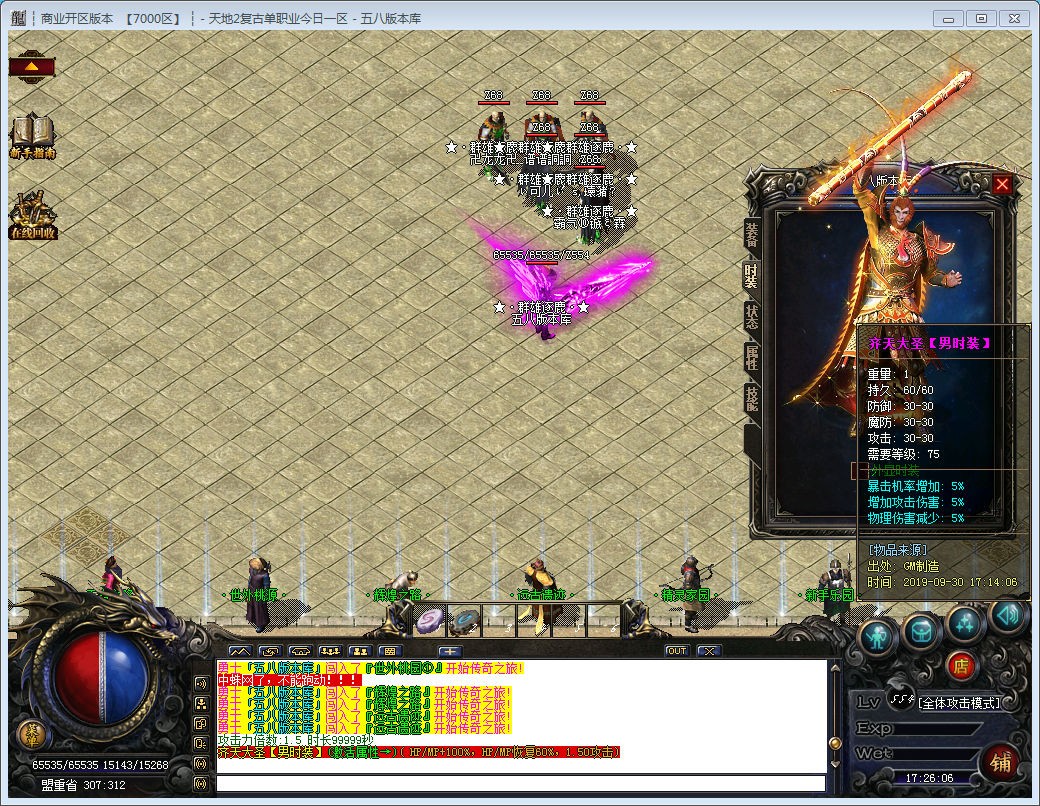 72级开放散人天堂不收取任何费用进,此地图乃兵家必争之地不多解释