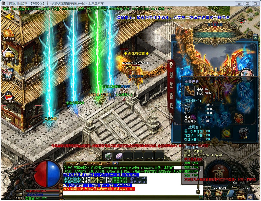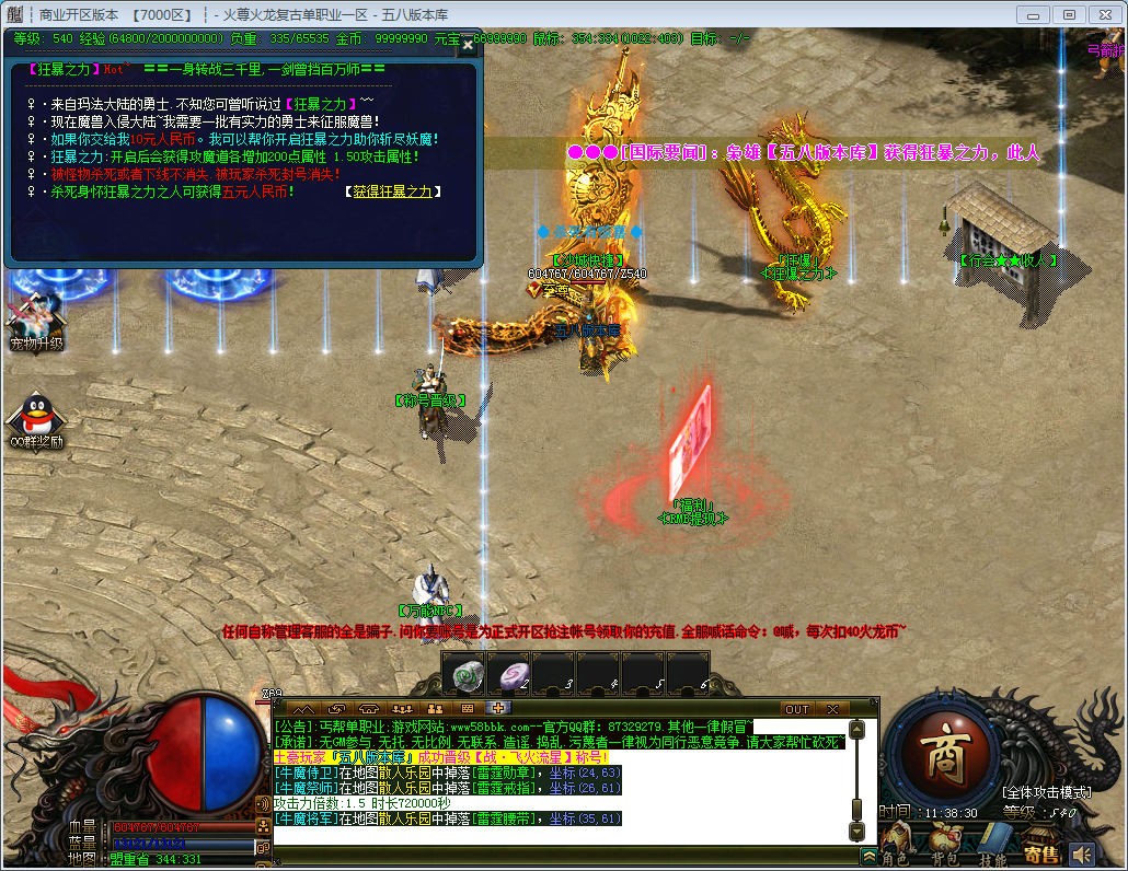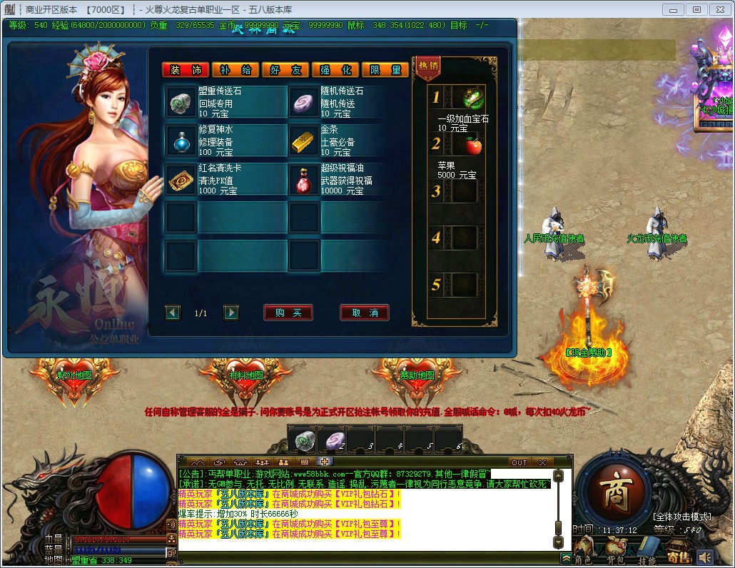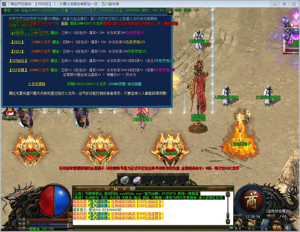 五、公告:BOSS爆一切装备,小怪爆实物,可兑换充值,跟真实充值一模一样!
