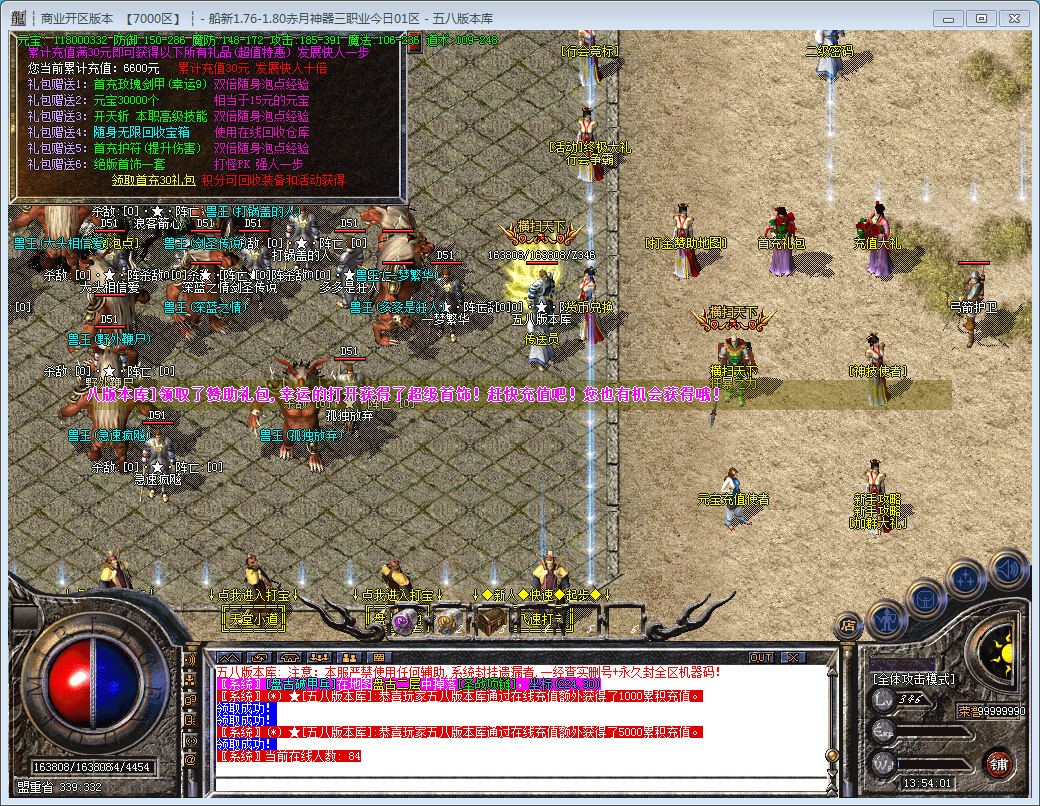 (3)充值玩家升级速度优越,可以率先进入高级地图打宝,非土豪玩家还是随身泡点到58级,不要吃珠子!当然土豪就随你任性!