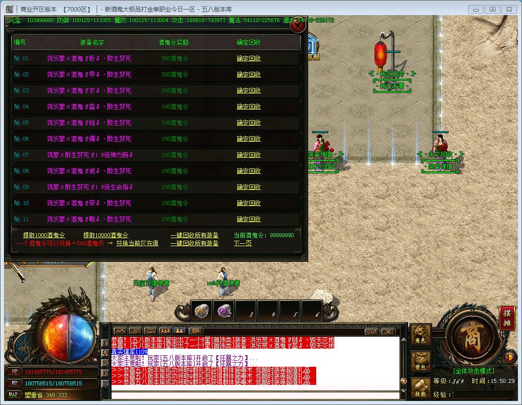 土城找到免费回馈NPC,领取10级技能+斗笠盾牌勋章套+80级等级卷+满切割+1.3倍攻击+1.3倍爆率等.