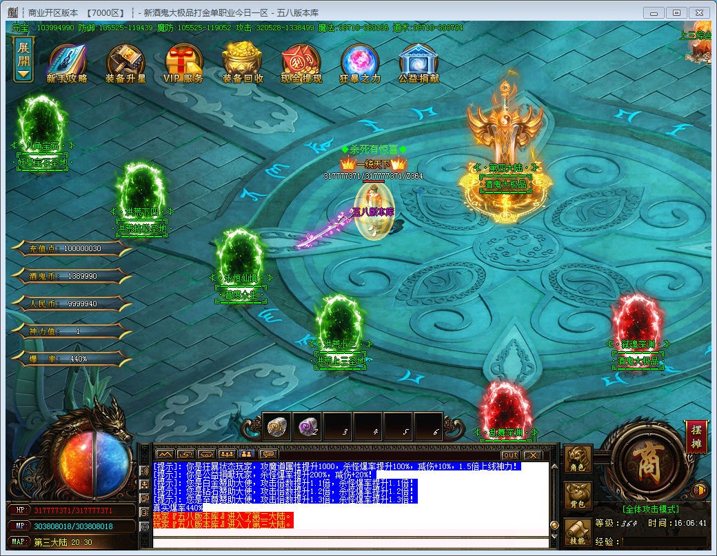 此版本专为散人设计,任何地图BOSS都刷的比较均匀(BOSS刷超级多),千倍万倍(小怪)爆率超级高