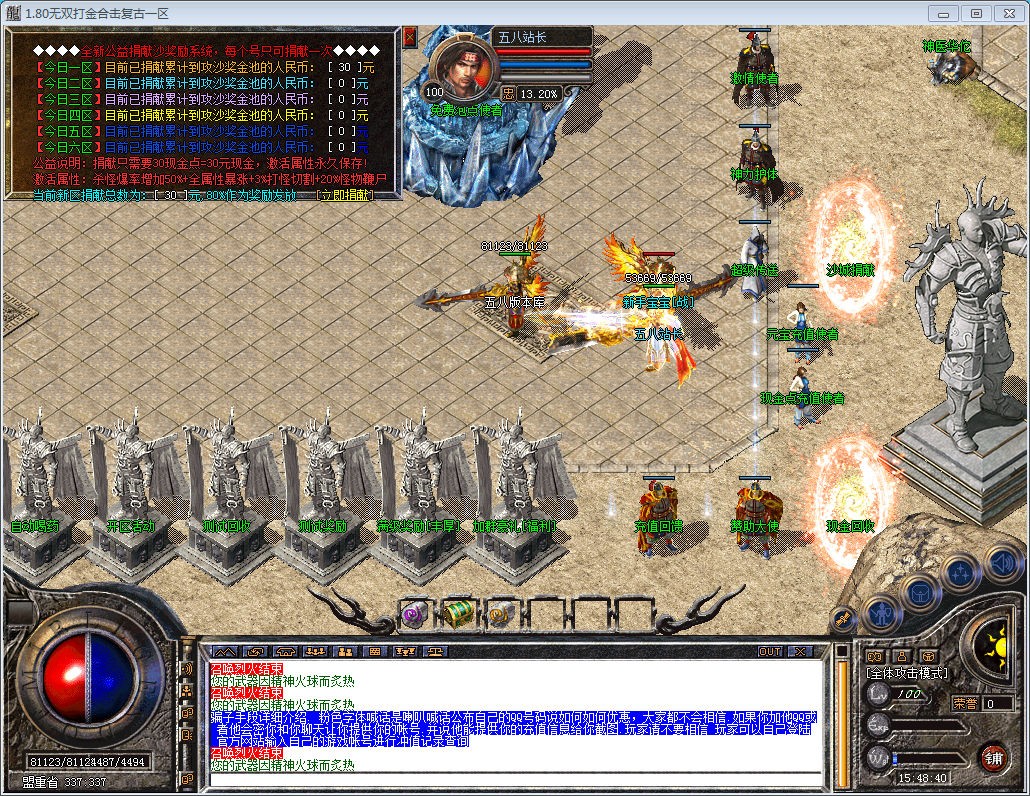 地图规则:只限新区开放一次.光圈内每秒+30W经+5元宝!