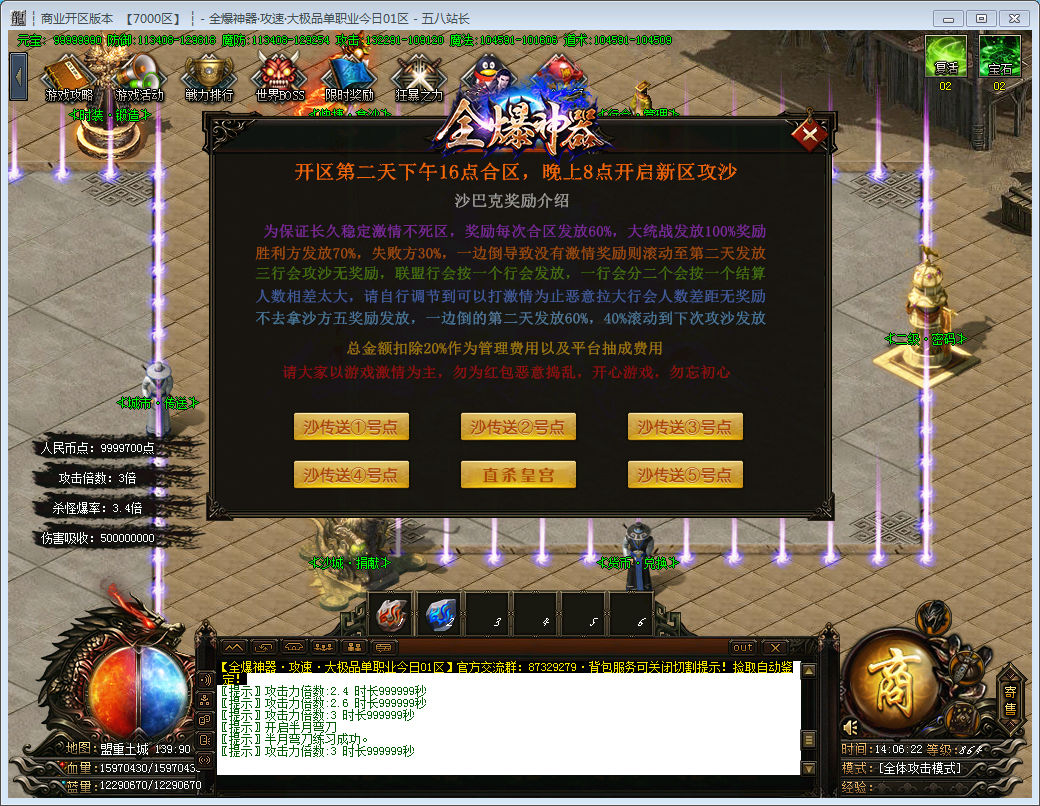 进测试区打米点元宝.开区起步快...限时..米..金米.元宝.都奖励多多