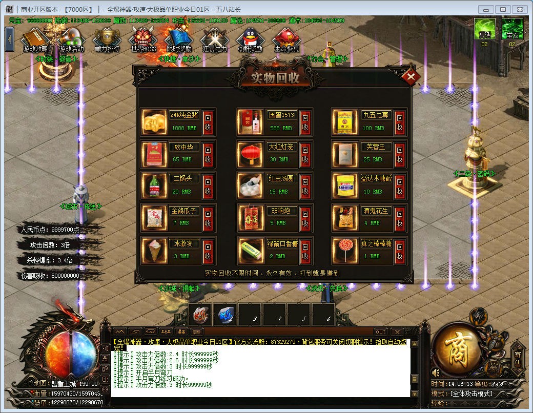实物爆满地,[全爆]倍数怪一定不要放过哦....本服物价保值,元宝,金米,碎片,装备...