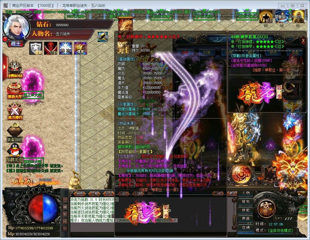 【版本介绍】此版本为独家特色龍帝·单职业,一切装备靠打!