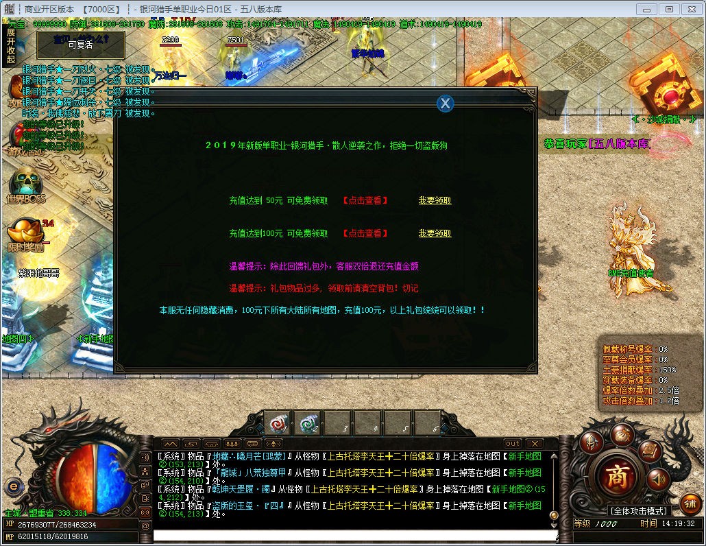 【游戏说明】:100米顶赞=满级=满转=满称号=满地图=满大陆!