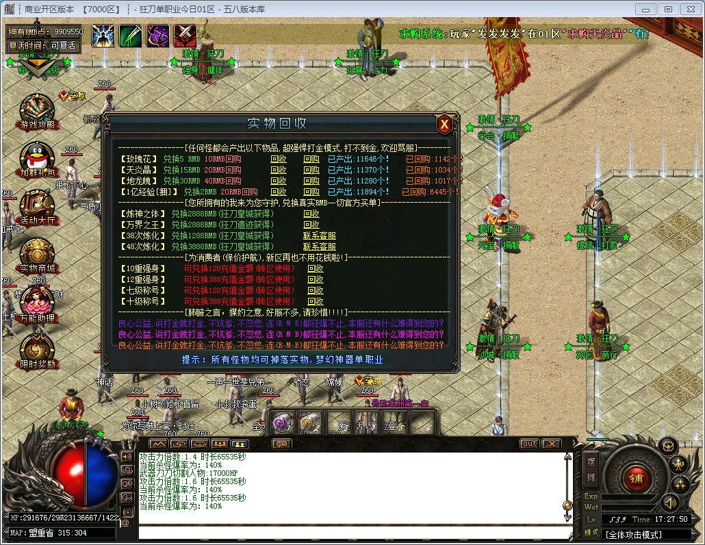 会员号30 满切割+会员号 50块, +狂暴+捐献=90块(只打怪不PK,见人就跑)