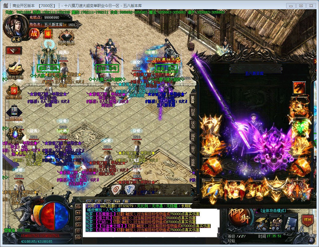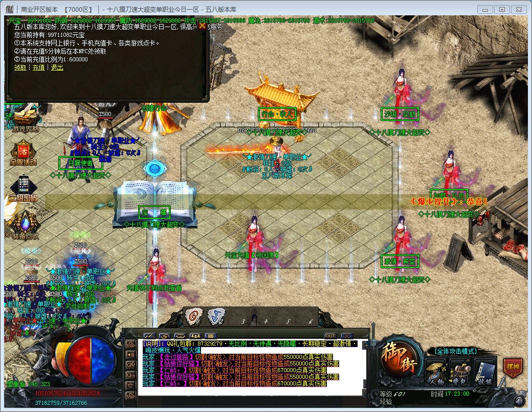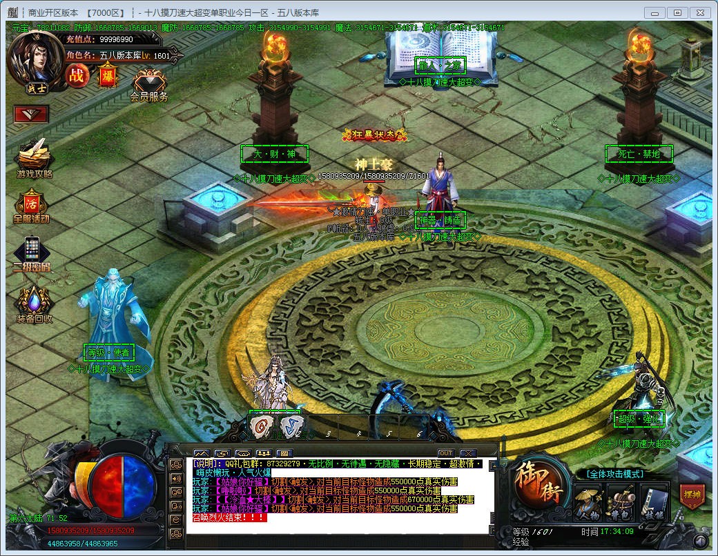 3.本服爆率全开,所有材料装备都能爆出,一切看脸,建议玩家先升级爆率称号,切割称号,领取高级刀刀切割,不爆装备的请先看看自身爆率。