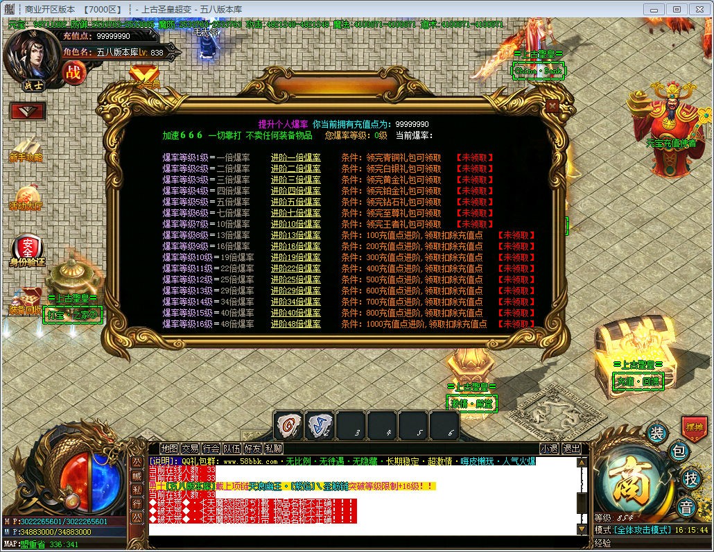【 上古聖皇】 上线送SSSSSSSS加速 切割999999999 充值点,米点小怪爆满屏