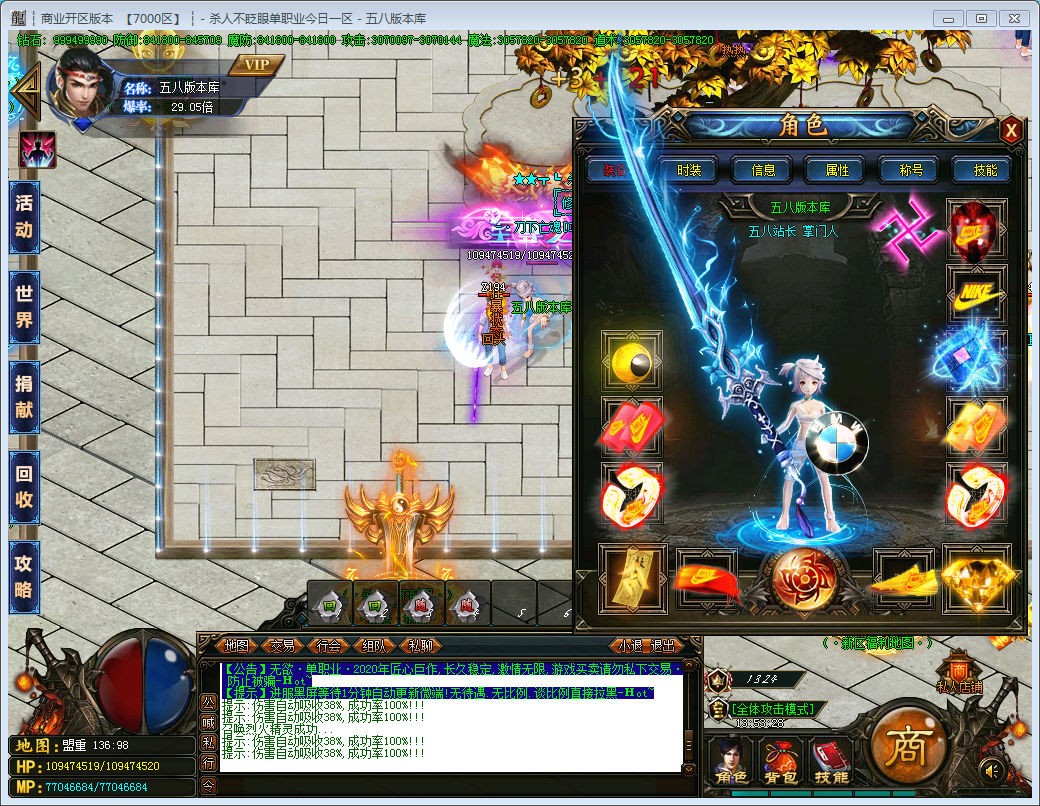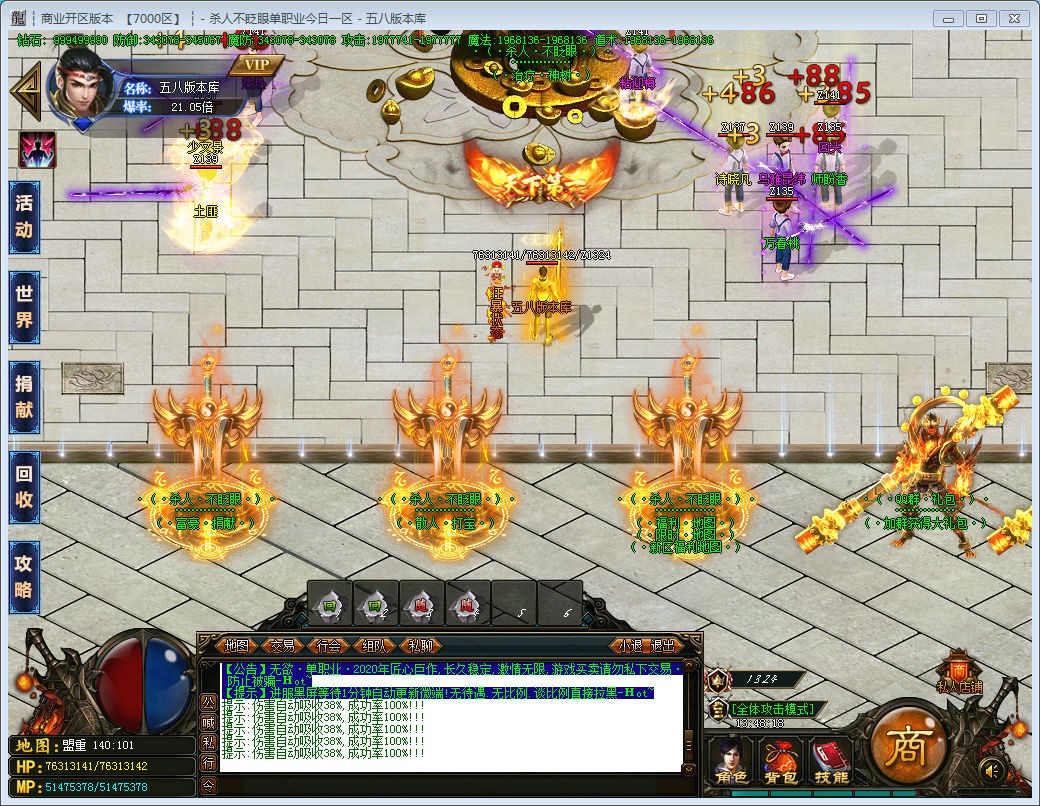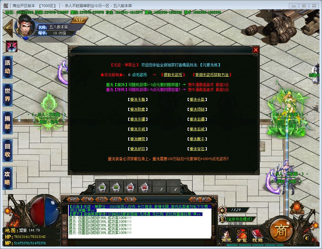 【杀人不眨眼】:|上装备永久回收,货币保值,任何怪物都有几率出终极,专为散人玩家设计!