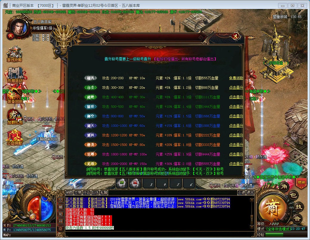 【官方平台】:|雷霆灵界·单职业正版MAX刀速2000人群.『QQ群:58